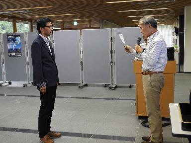 初めに、本試験の責任者であるスマートキャンパス部門長の 引き続き坂内先生より、皆様に合格証が