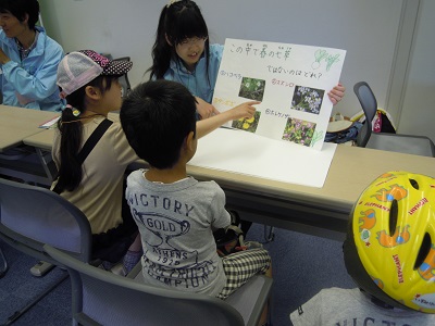 紙芝居では、子供たちが紙芝居を見て、自分が見たことのある植物が出た時の反応が