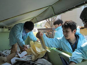 三重大学では、コンテナを導入する以前は、各研究室や部署で古紙を保管・管理していた古紙を、